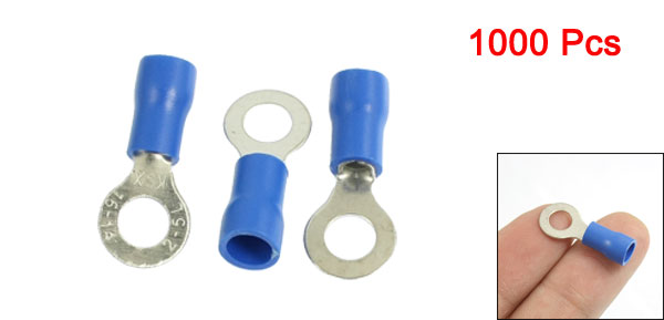 1000 Pcs RV2-5L AWG 16-14 Blue PVC Sleeve Pre Insulated Ring Terminals Connector
