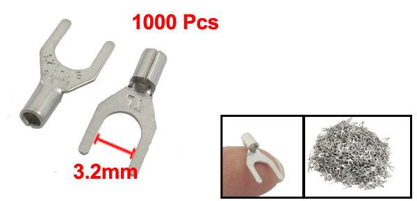 1000 Pcs SNB1.25-3.2 AWG 22-16 Non Insulated Fork Terminals Connectors