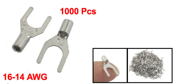 1000 Pcs SNB2-3.2 AWG 16-14 Non Insulated Fork Terminals Connectors