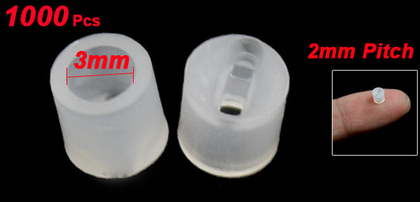 Product Name LED Spacers Quantity 1000±2% Inner Hole Dia.(Approx.) 3mm Hole Pitch(Approx.) 2mm Total Size(Approx.) 4 x 4mm/ 0.16" x 0.16" (D*L) Material Nylon Color White Net Weight 40g Package Content 1000 x LED Spacers - Reviews