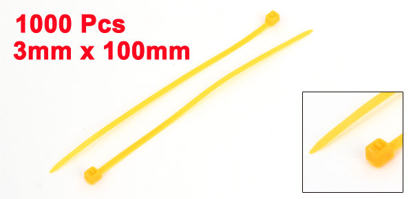 1000 Pieces 3mmx100mm Nylon Self-Locking Electric Cable Zip Ties Fastener Yellow