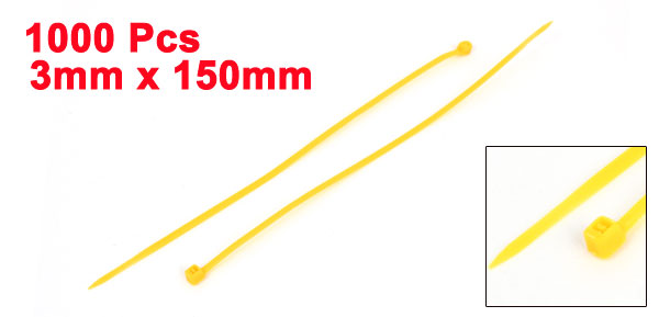 1000 Pieces 3mmx150mm Nylon Self-Locking Electric Cable Zip Ties Fastener Yellow