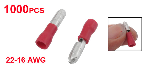 1000 x 3.7mm Dia Red PVC Sleeve Insulated Terminals for 22-16 AWG
