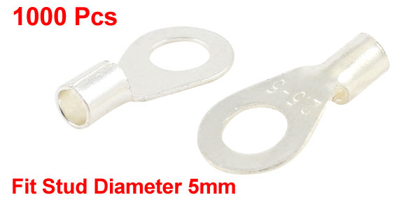 1000 x 5mm Stud Copper Lug Cable Connector Non-insulated Ring Terminal