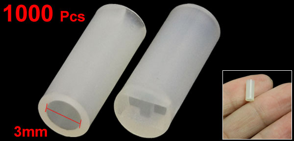 Product Name LED Spacers Quantity 1000±2% Inner Hole Diameter 3mm Hole Pitch(Approx.) 2mm Total Size 4 x 10mm/ 0.16" x 0.39" (D*L) Material Nylon Color White Net Weight 87g Package Content 1000 x LED Spacers - Reviews