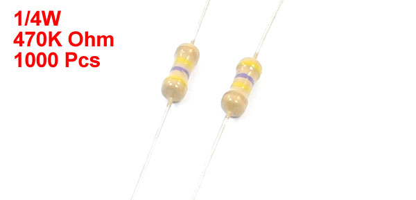 Product Name Carbon Film Resistors Material Carbon Film Power Rating 1/4W Resistance Tolerance ± 5% Resistance 470K Ohm Size (Approx.) 48 x 3mm / 1.9" x 0.12" (L*Max.D) Main Color Silver Tone, Yellowish Brown Weight 104g Package Content 1000Pcs(±2%) x Carbon Film Resistor - Reviews