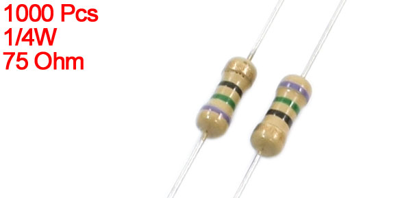 1000Pcs 1/4W 75 Ohm 5% Tolerance Carbon Film Resistor Axial Lead
