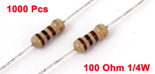 1000pcs 100 Ohm 1/4W 46mmx2mm Axial Leads Colored Ring Carbon Film Resistance