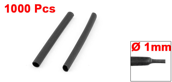 1000Pcs 2:1 1mm Black Heat Shrink Tubing Tube Sleeving Wrap Wire 30mm Length