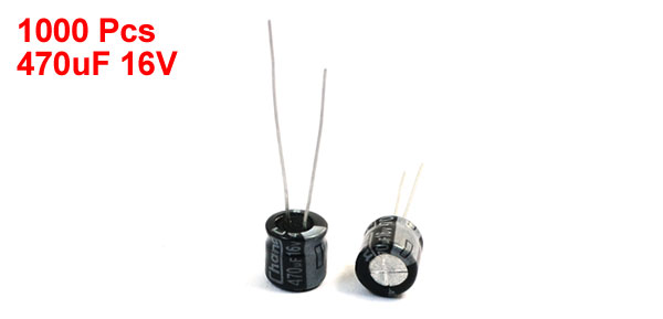 Capacitance 470uF(±20%) Body Size 8mm x 7mm/ 0.31" x 0.28"(H*D) Lead Space 3mm Lead Length 27mm, 22mm Main Color Black Total Weight 726g Package Content 1000Pcs(±2%) x Electrolytic Capacitors - Reviews