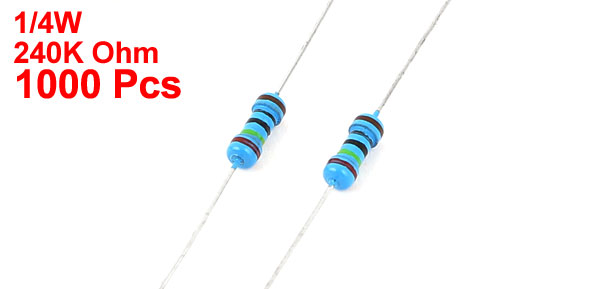 Product Name Metal Film Resistor Power Rating 1/4W Resistance 240K Ohm Tolerance +/-1% Total Length(Approx.) 6cm/2.4" Body Size 2.2 x 5.5mm/0.09" x 0.24"(D*L) Color As Picture Show Weight 111g Package Content 1000(+/-2%) x Metal Film Resistors - Reviews