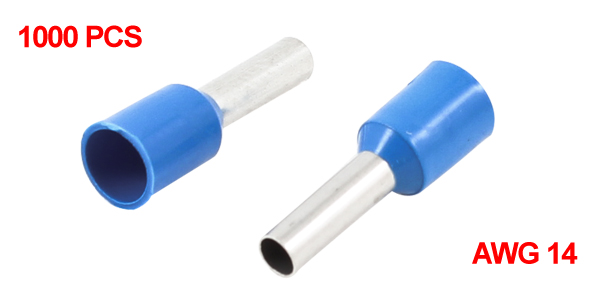 1000pcs Blue Pre-insulated Tube Terminals Cable Lug for 14 AWG