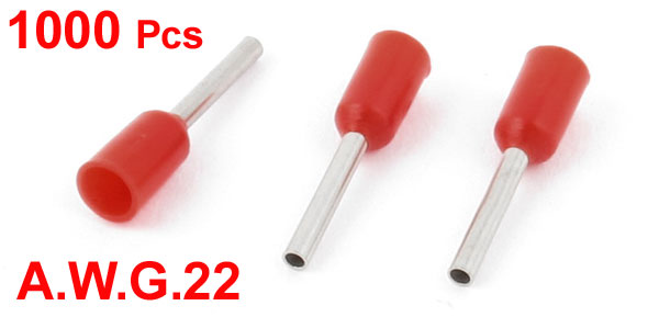 1000pcs E0508 Red Wire Crimp Connector Insulated Ferrule Pin Cord Terminal AWG22