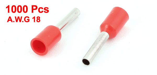 Details1000Pcs E1008 Wire Crimp Connector Insulated Ferrule Cord End Terminal AWG18 Red  Product Name Insulate Ferrule Model E1008 Design Tube Type Material Plastic, Metal Color Silver Tone, Red Fit Cable Size 1.0mm2(A.W.G 18) Metal Tube Size 1.4 x 1.7 x 8mm / 0.06" x 0.07" x 0.3"(Inner Dia*OD*L) Plastic Tube Inner Dia 3 mm / 0.12" Total Length 14.6 mm / 0.57" Net Weight 87g Package Content 1000(+/-2%)Pcs x Insulate Ferrules