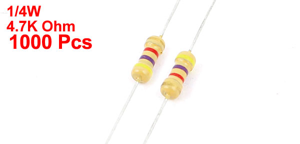 1000pcs Electrical 1/4W 4.7K Ohm Axial Lead 4 Bands Carbon Film Resistor