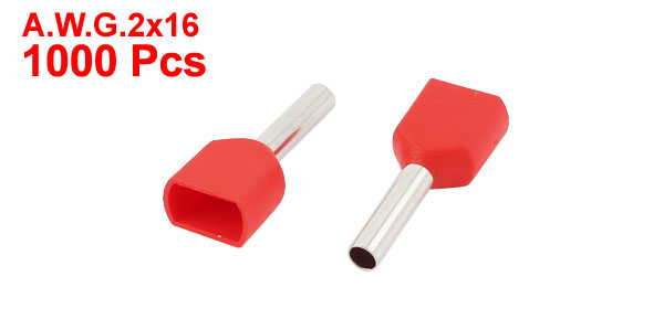 1000pcs Electrical 2x16 AWG Twin Wire Insulated Ferrule Terminal TE1510