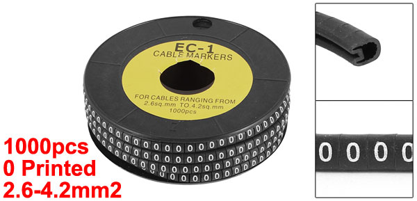 Product Name Cable Markers Model EC-1 Material Soft PVC, Plastic Marker Number 0 Fit Cable 2.6-4.2mm² Inner Diameter(Approx.) 3.6mm/0.14"(Max.) Each Marker Size(Approx.) 6 x 4 x 7mm/ 0.31" x 0.28" x 0.31"(L*W*H) Color Black Weignt 133g Package Content 1000(±2%) x Cable Markers - Reviews