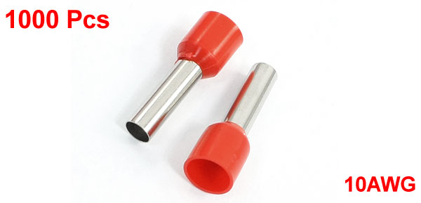 1000Pcs Pipe Pre Insulation Terminal Tube Connector Red for 10AWG Wire