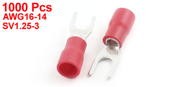 1000PCS Red Insulated Furcate Fork Terminals Cable Lug AWG16-14 SV1.25-3