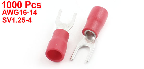 1000PCS Red Insulated Furcate Fork Terminals Cable Lug AWG16-14 SV1.25-4
