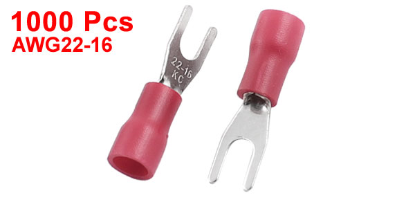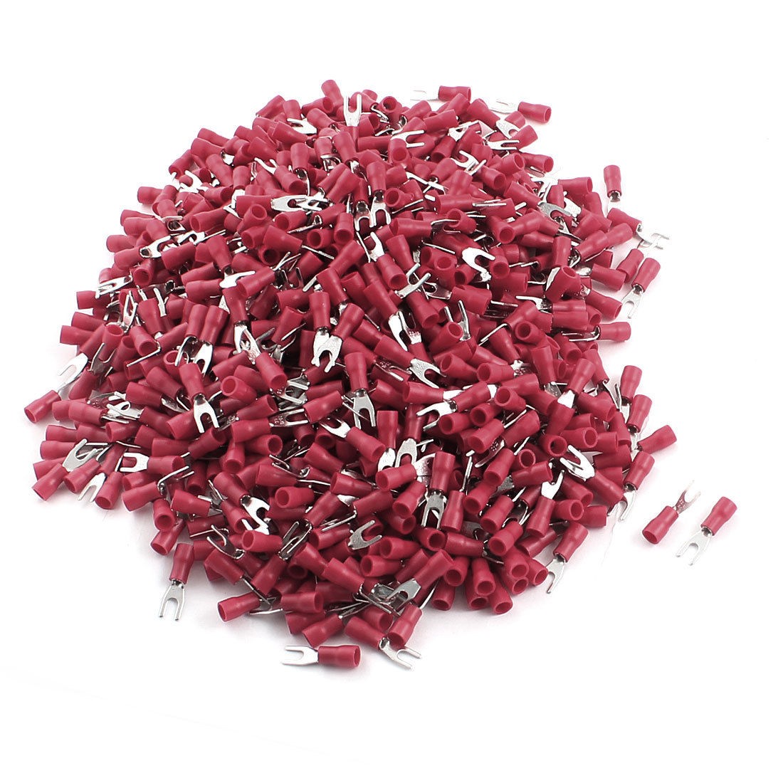 1000PCS Red Insulated Furcate Fork Terminals Cable Lug AWG22-16 SV1.25-3