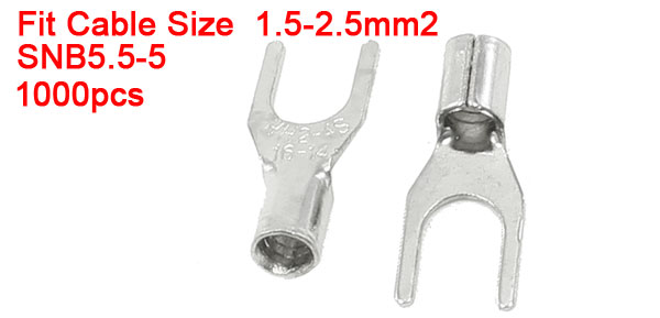 1000pcs SNB5.5-5 Fork Type Non-Insulated Spade Cable Terminals for AWG 22-16