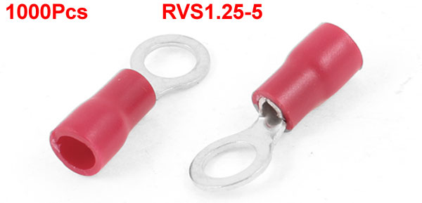 1000Pcss RVS1.25-5 Ring Tongue Type Pre Insulated Terminal Red for A.W.G 22-16