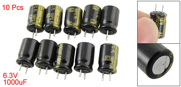 Product Name Electrolytic Capacitor Type Radial Maximum Temperature 105°C Voltage 6.3V Capacitance 1000uF Size 12.6 x 10mm / 0.49" x 0.39" (L*D) Lead Space 3mm Lead Length 4mm External Material Aluminum Weight 11g Main Color As Picture Show Package Content 10 Pcs x Electrolytic Capacitors - Reviews