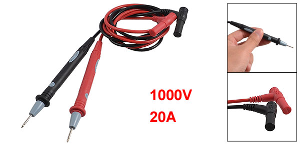 Details1000V 20A Probe Test Lead Wire 40.7" for Multimeter Meter  Product Name Multimeter Probe Cat III 1000V Current 20A Tip Length (Approx.) 1.6cm/0.6" Total Length (Approx.) 103.5cm/40.7" Color Red, Black Weight 64g Package Content 1 Pair Multimeter Probe