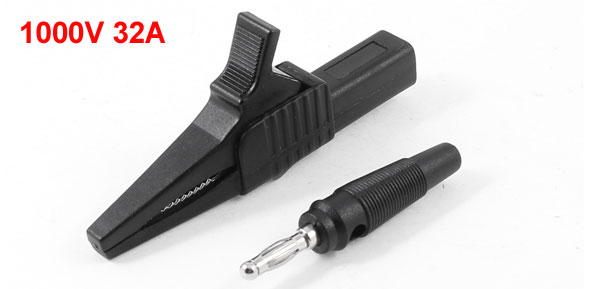 1000V 32A Black 85mm Length Alligator Clip Clamp Test Lead Probe w Banana Plug