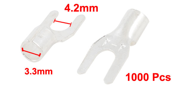 1000x 4.2mm Cable Connector Copper Lug Non-insulated Fork Terminal