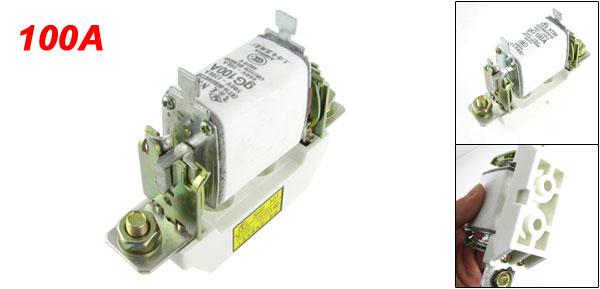 Product Name Fuse Link w Base Model NT00, gG 100A Rated Breaking Capacity 500V, 120kA 660V, 50kA Rated Current 100A Thread Dia. 0.7cm/0.28'' Overall Size 11.7 x 3 x 8.5cm/4.6'' x 1.2'' x 3.3'' (L*W*H) External Material Ceramic, Metal, Plastic Color White & Silver Tone Weight 299g Package Content 1 x Fuse Link w Base - Reviews