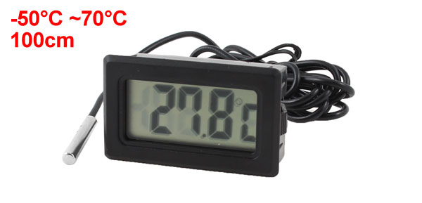 100cm Long Cable Black Plastic Housing LCD Display Digital Thermometer