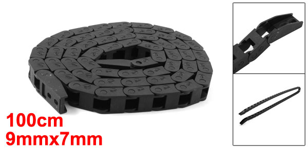 Product Name Cable Drag Chain Material Plastic Internal Size 9 x 7 x 8mm/ 0.35" x 0.28" x 0.31"(L*W*H) External Size 12 x 10mm/ 0.47" x 0.39"(W*H) Bending Radius R 3cm/ 1.2" Total Length 100cm/ 3.3Ft Color Black Net Weight 75g Package Content 1 x Cable Drag Chain - Reviews