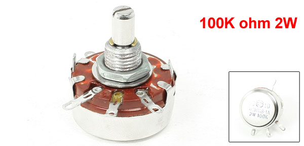 Product Name Carbon Potentiometer Model WTH118 Technology Carbon Composition Rated Power 2W Resistance Value 100K ohm Tolerance 5% Turn Number Single Turn Terminals Number 4 Features Round Shaft Body Size 28 x 14mm / 1.1" x 0.55"(D * H) Screw Thread Dia. 10mm / 0.4" Shaft Diameter 6mm / 0.24" Shaft Length 9mm / 0.35" Total Length 33mm / 1.3" Color Red, Silver Tone Net Weight 21g Package Content 1 x Carbon Potentiometer - Reviews