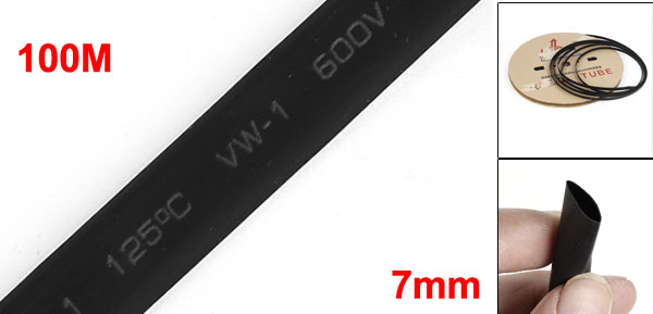 100M Black Polyolefin Heat Shrinkable Tubings 7mm Diameter