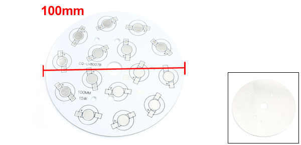 Product Name Aluminum PCB Circuit Board Fit for 15pcs 1W/3W LED Diameter 100mm/3.9" Thickness 1.4mm/0.05" Installation Hole Distance 48mm/1.9"(Center to Center) Net Weight 29g Materials Aluminum Package Content 1 x Aluminum PCB Circuit Board - Reviews