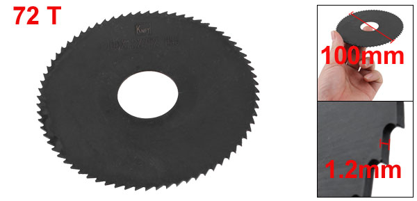 Product Name Saw Blade Main Material HSS Color Black Cutting Diameter 100mm / 3.937" Thickness 1.2mm / 0.047" Teeth Quantity 72T Arbor Hole Diameter 27mm / 1.063" Net Weight 62g Package Content 1 x Saw Blade