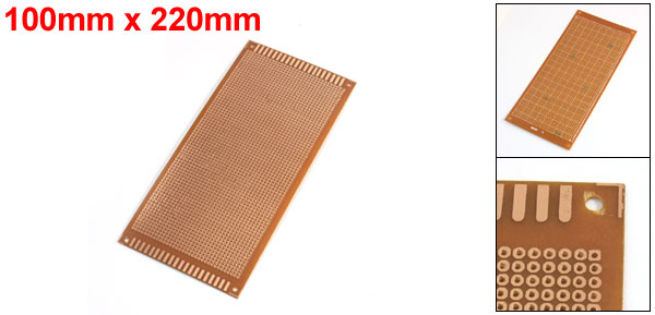 Product Name Universal PCB Board Hole Dia(Approx) 1mm / 0.039" Hole Pitch(Approx) 2.54cm / 0.1" Size(Approx) 100 x 220mm / 3.9" x 8.7"(W*L) Thickness(Approx) 1.1mm / 0.043" Material FR-4 Color Copper Tone Net Weight 27g Package Content 1 Pcs x Universal PCB Board - Reviews