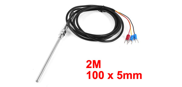 100mm x 5mm 2 Meters PT Type 0-400C Temprature Sensor Thermocouple Probe