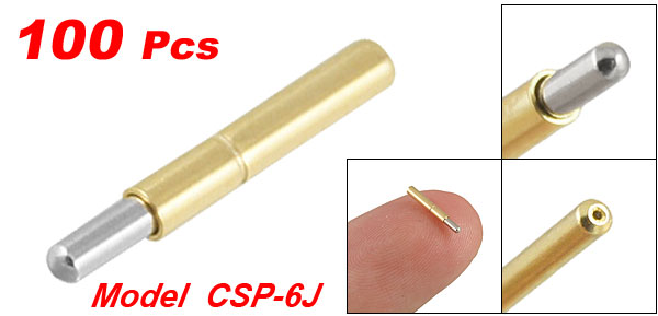 Product Name Spring Probes Quantity 100±2% Pcs Model CSP-6J Material Metal Tip Diameter (Approx) 0.99mm/ 0.039" Barrel Diameter (Approx.) 1.36mm/ 0.054" Overall Length(Each) 9.7mm / 0.38" Color Gold Tone Net Weigth 10g Package Content 100 x Spring Probes - Reviews