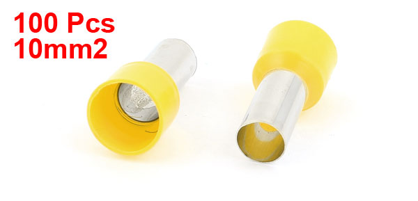100pcs 10mm2 Crimp Cord End Terminal Insulated Bootlace Ferrule Connector Yellow
