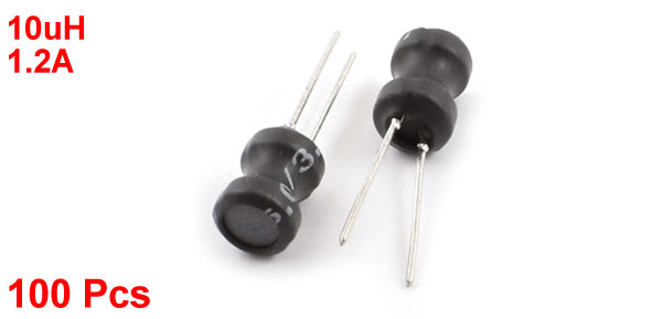 Product Name Radial Lead Inductor Inductance 10uH Rating Current 1.2A Tolerance 10% Body Size 6 x 8mm / 0.24" x 0.31"(D*H) Lead Distance 3mm / 0.12" Color Black, Silver Tone Weight 77g Package Content 100(±2%) x Radial Lead Inductor - Reviews