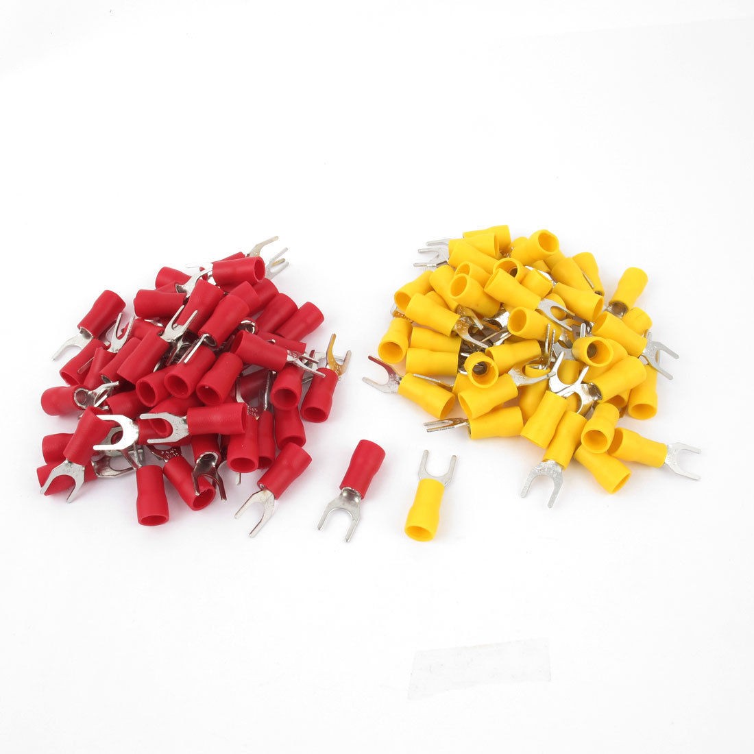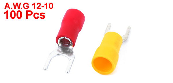 100pcs 12-10 AWG Wire Connector Insulated Fork Spade Terminal 1/4 Yellow Red