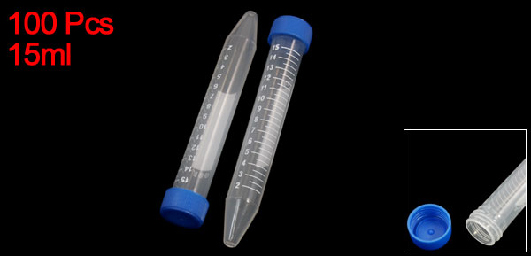 Product Name Centrifugal Tube Material Polypropylene Type Conical Bottom Capacity 15ml Body Diameter 16.5mm/0.65" Total Size 12 x 2.1cm/4.7" x 0.83" Color Clear, White, Blue Weight 650g Package Content 100 Pcs(± 2%) x Centrifugal Tube - Reviews