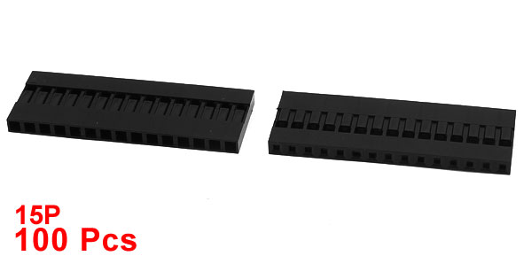 Product Name Jumper Wire Female Pin Connector Type 15P Pitch 2.54mm Size(Approx.) 38 x 14 x 2.5mm/1.5" x 0.6" x 0.1"(L*W*T) Color Black Metarial Plastic Net Weight 74g Package Content 100(+/-2%) x Jumper Wire Female Pin Connectors - Reviews
