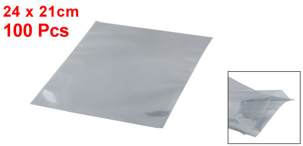 Product Name Anti Static Bag Overall Size 24 x 21cm / 9.4" x 8.3" (L*W) Material Plastic Color Clear Gray Net Weight 478g Package 100 (±2%) x Anti Static Bag - Reviews