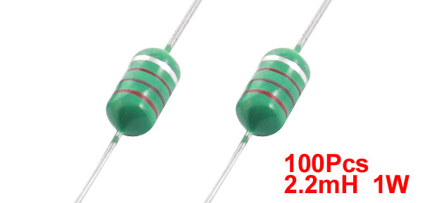 100Pcs 2.2mH 10% 0510 1W Power Axial Leaded Color Ring Inductors 5x10mm