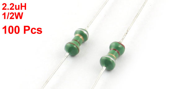 Product Name Color Ring Inductor Inductance Tolerance 10%(K) Inductance 2.2uH Power 1/2W Material Epoxy Resin, Metal, Inductor Body Size 4mm x 10mm / 0.16" x 0.4"(Max.D*L) Lead Diameter 0.5mm Total Length 6cm / 2.4" Net Weight 27g Package Content 100(±2%) x Color Ring Inductor - Reviews