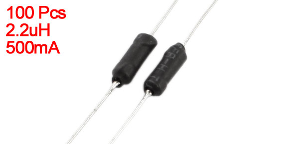 100Pcs 2.2uH 500mA 3x6mm 10% Tolerance Axial Leaded Inductor Black